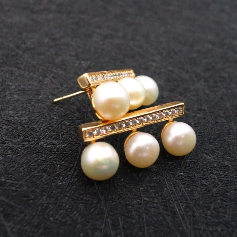 Materials:Gold Plated,Natural Freshwater Pearl,Zircon
