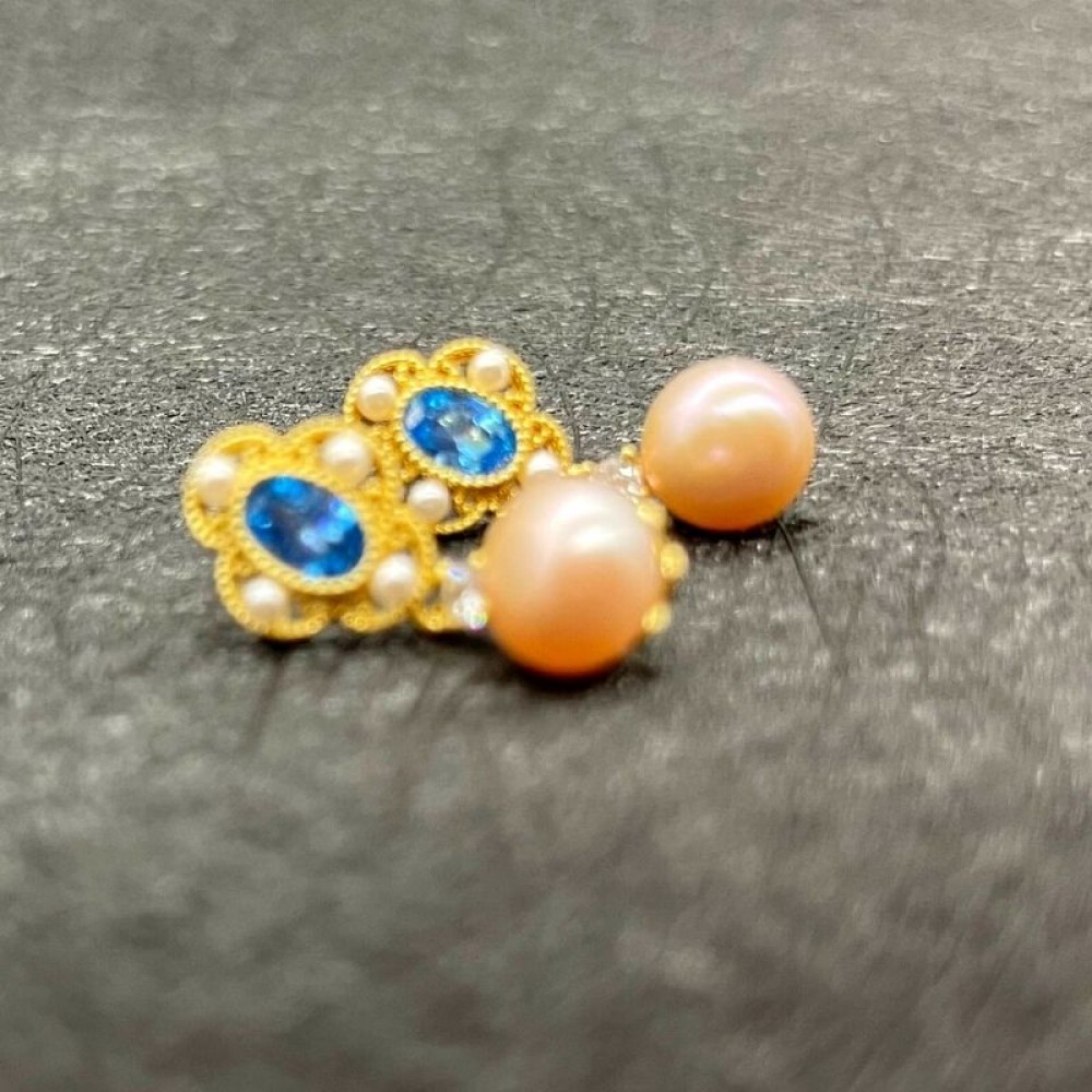 Materials:Gold Plated,Bule Cubic Zircon,Natural Freshwater Semi-round Pearl,Zircon
