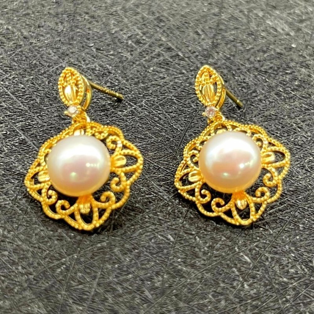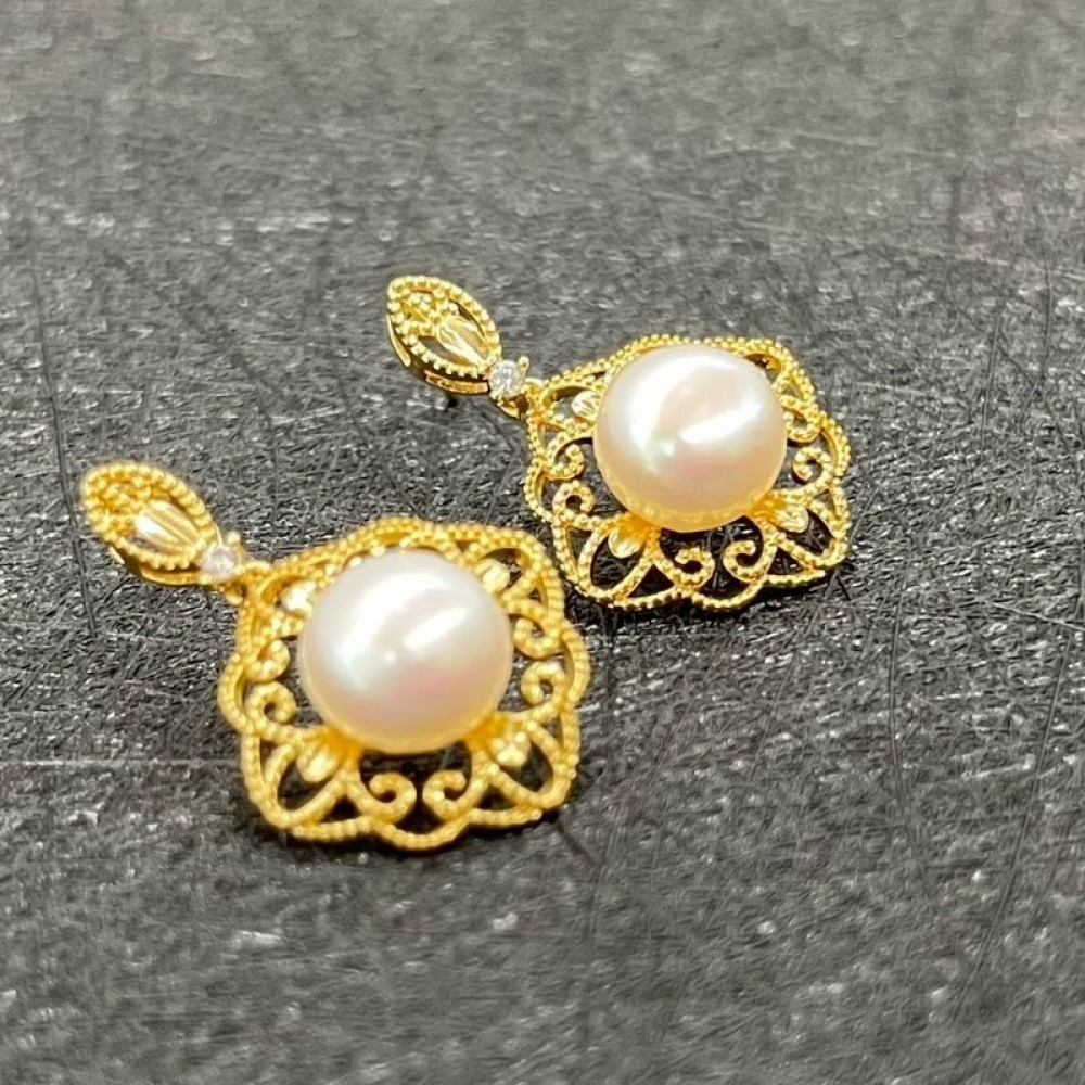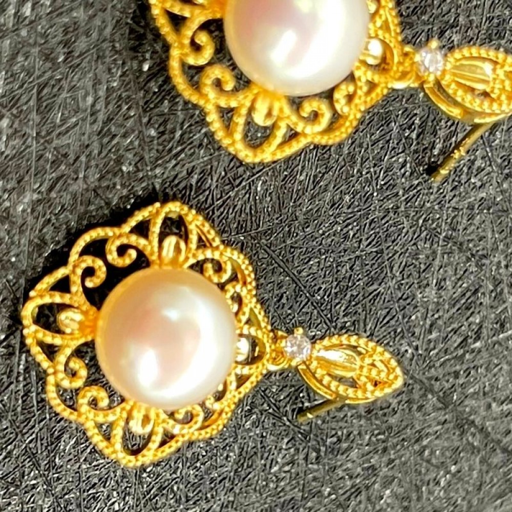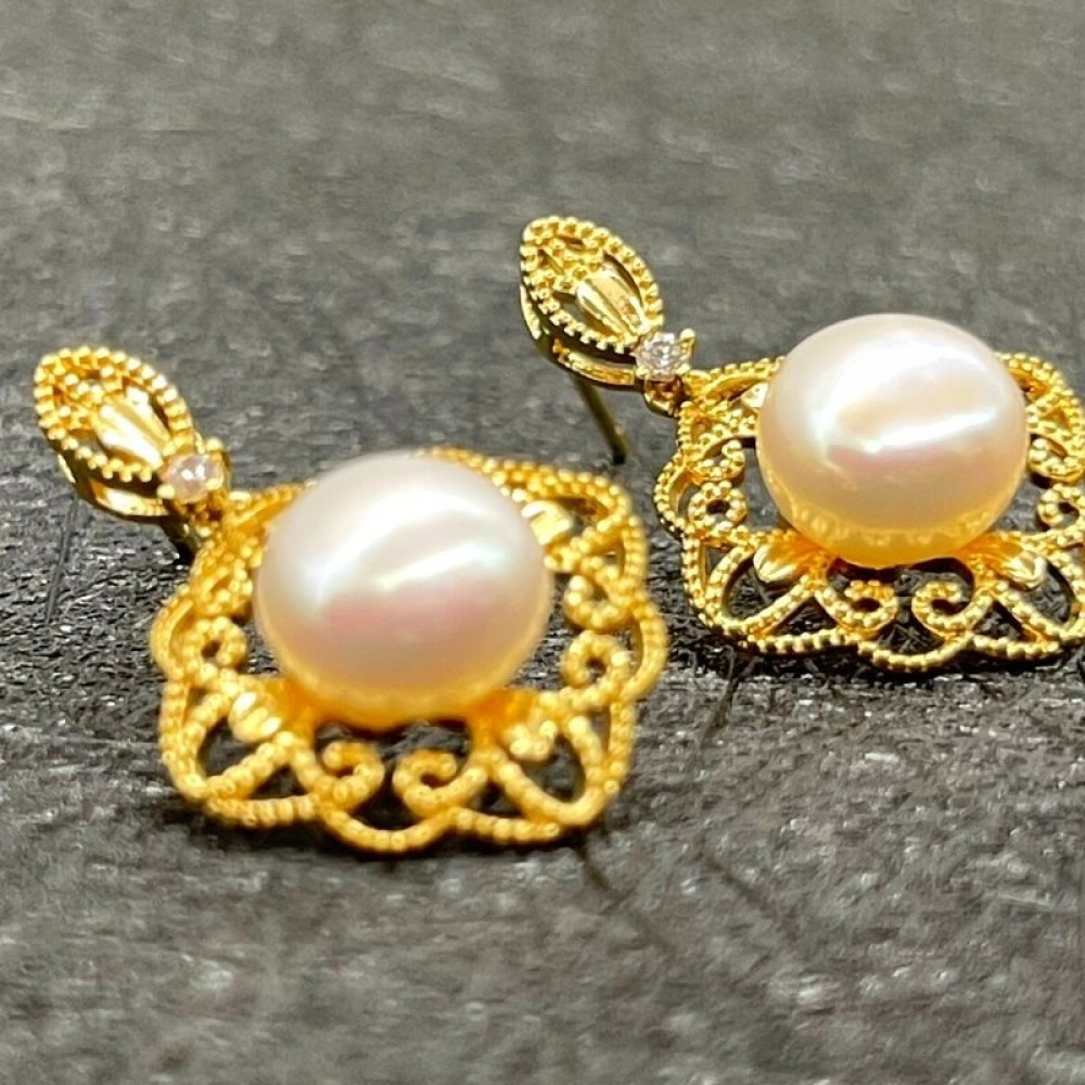 Materials:Gold Plated,Natural Freshwater Semi-round Pearl,Zircon