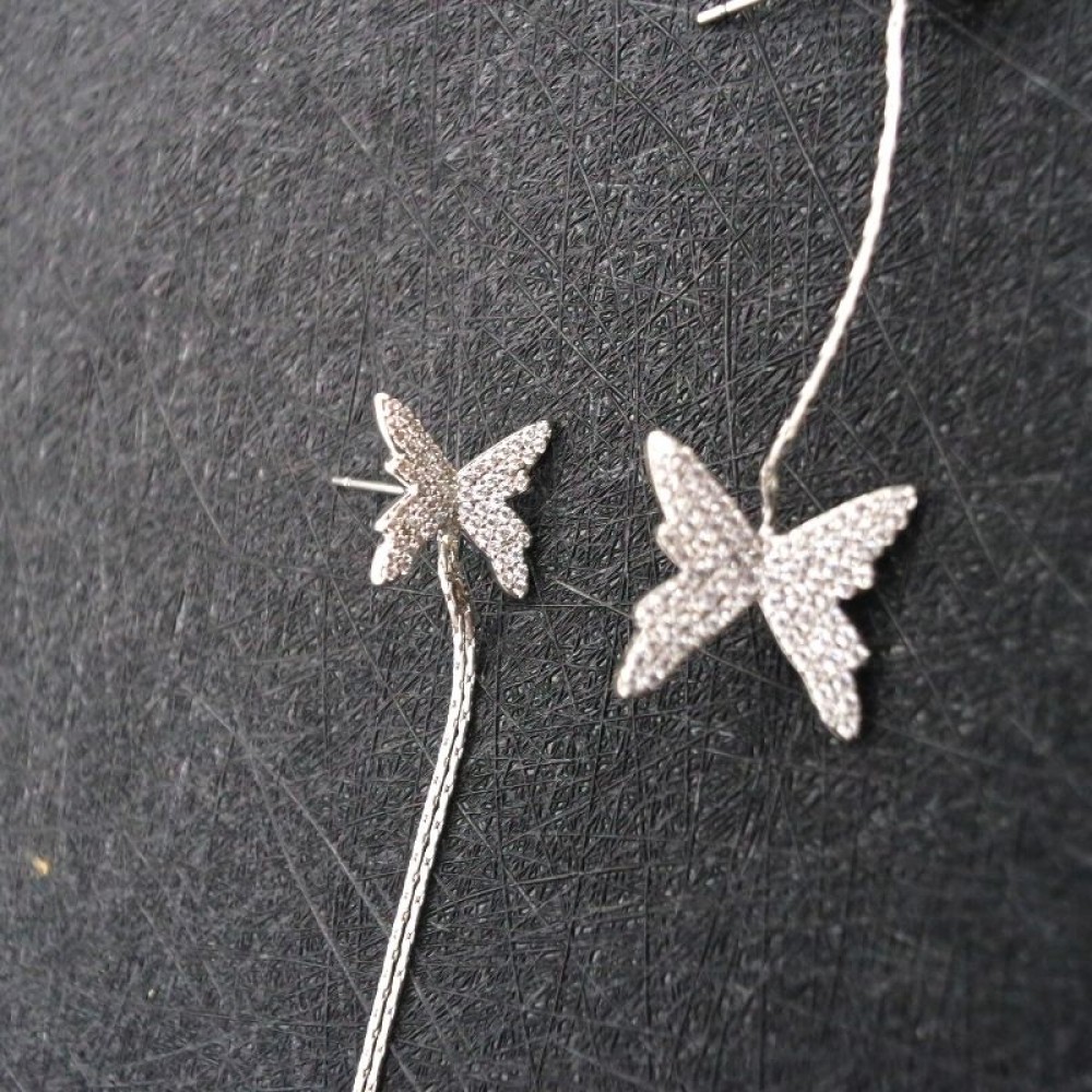 • AB Type Silver Butterfly Tassel Collection Pearl Stud Earring
