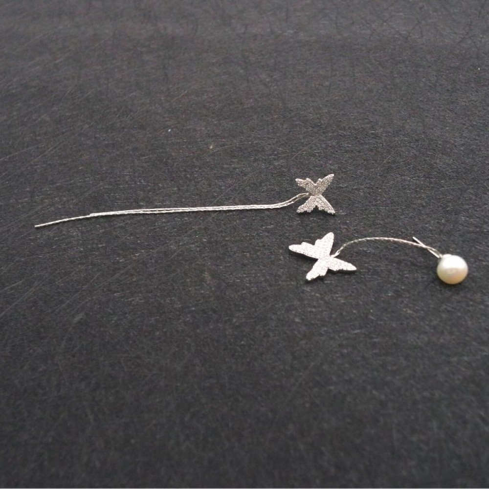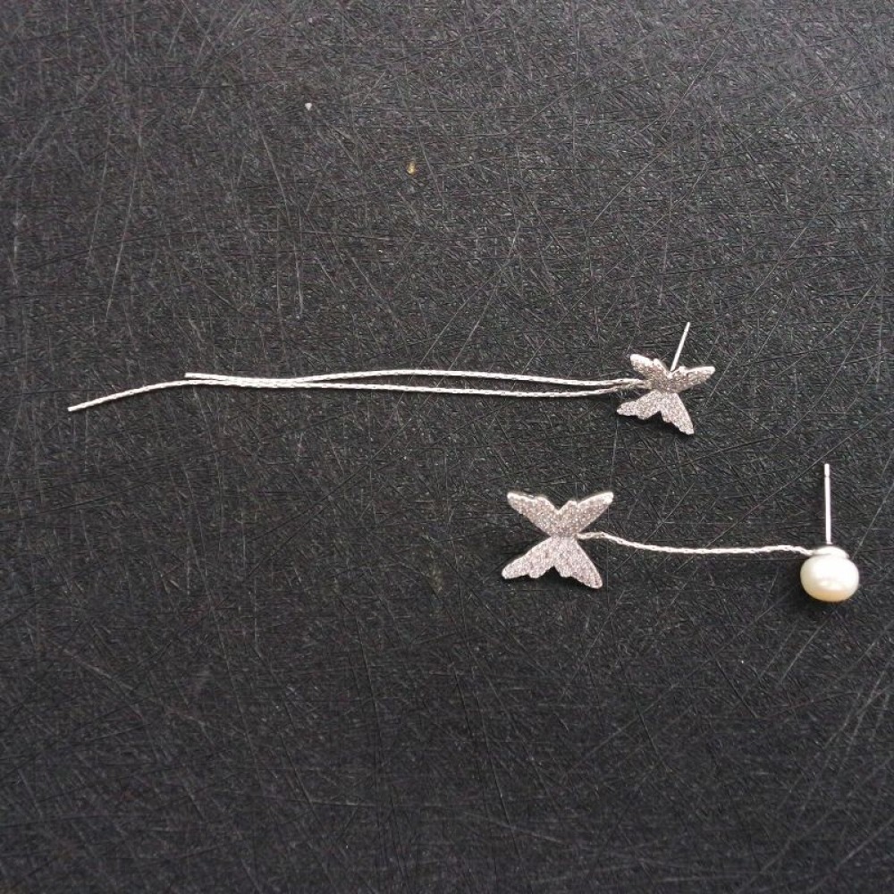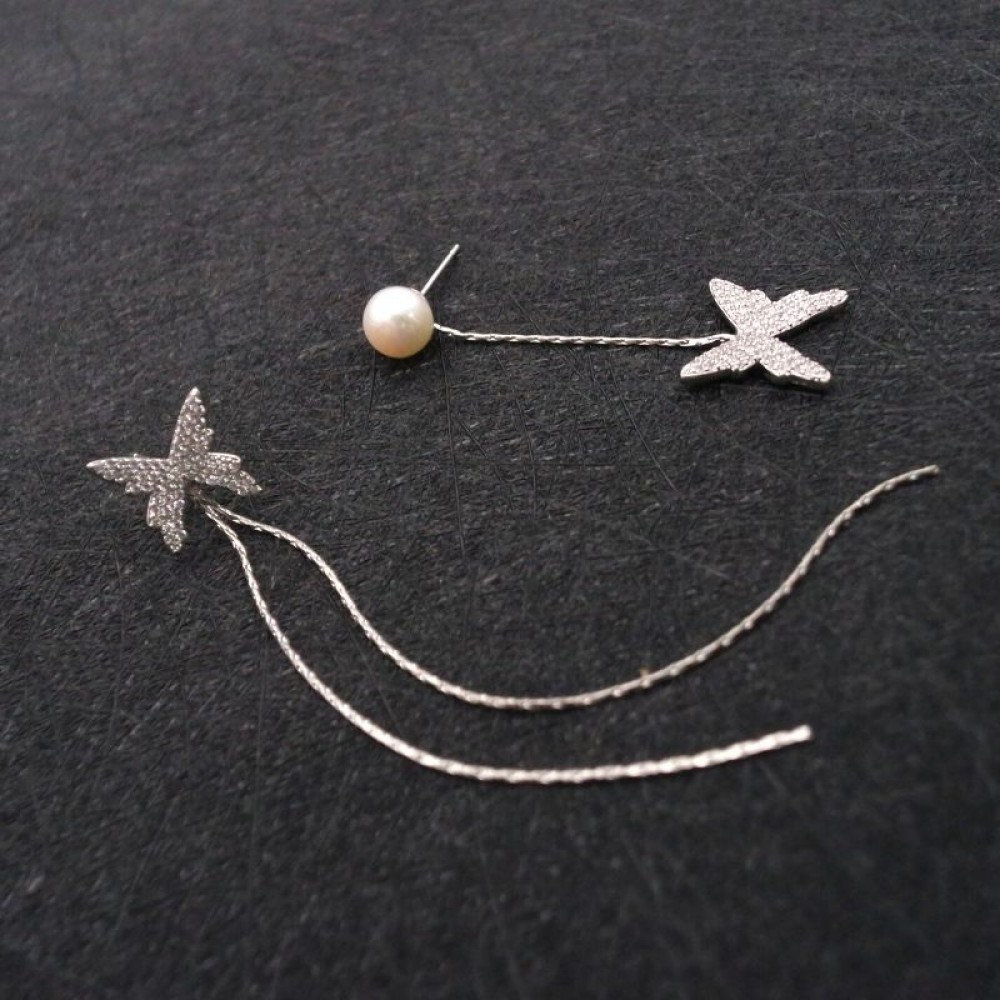AB Type Silver Butterfly Tassel Collection Pearl Stud Earring