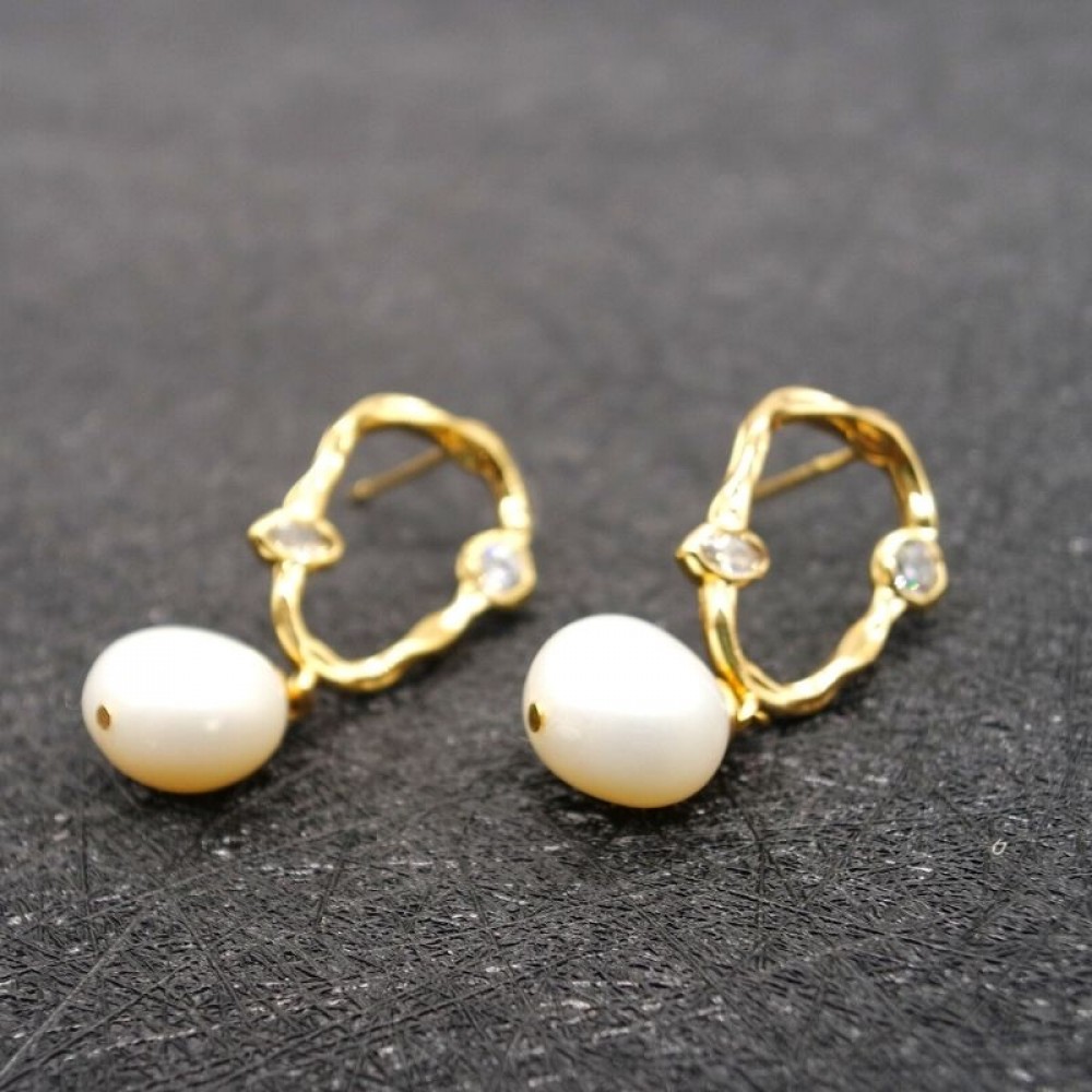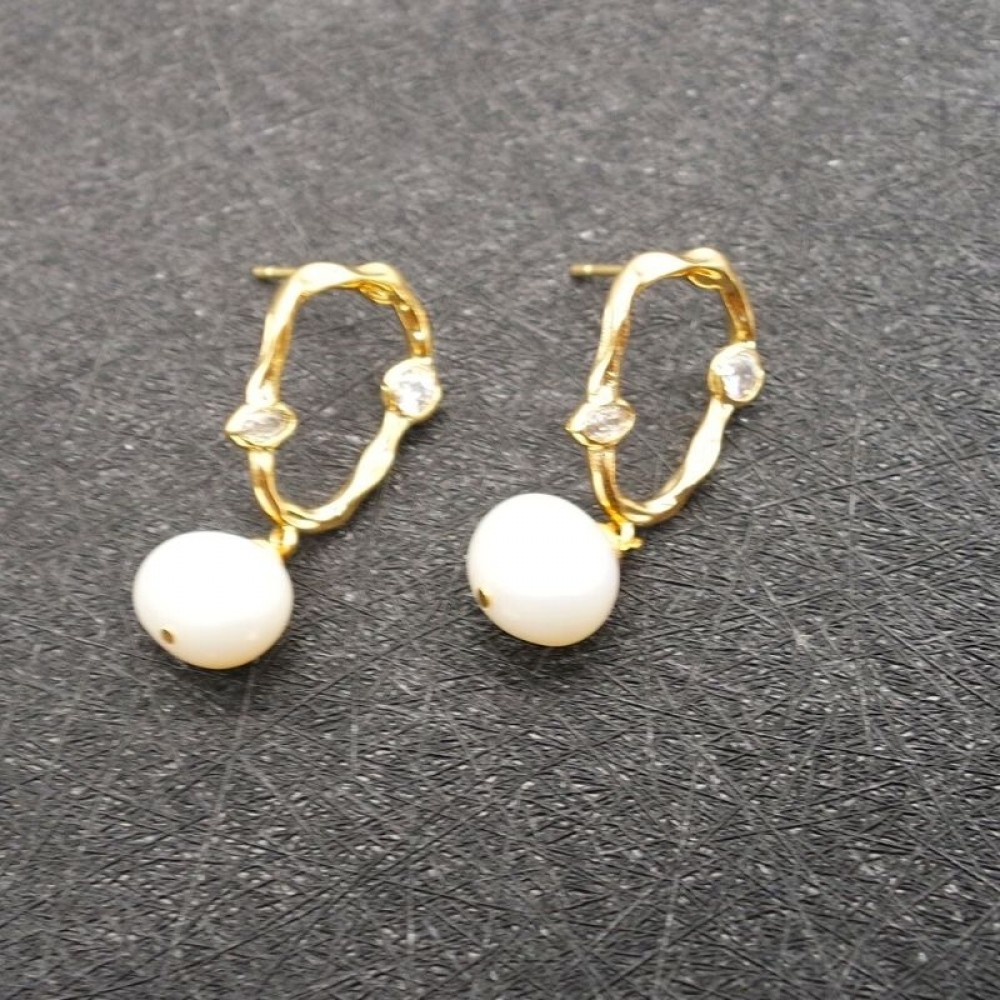 Materials:Gold Plated,Natural Freshwater Pearl,Zircon