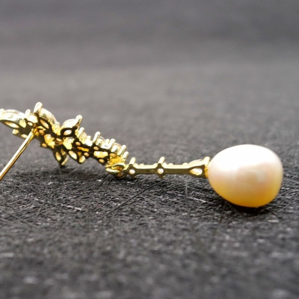 Materials:Gold Plated,Natural Freshwater Pearl,Zircon