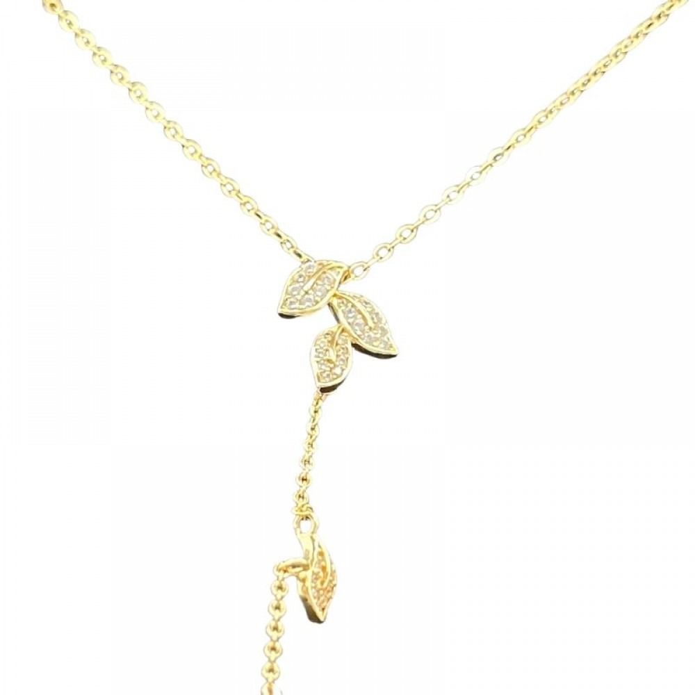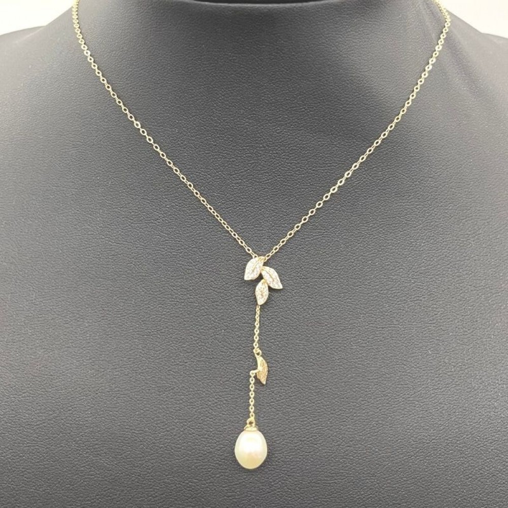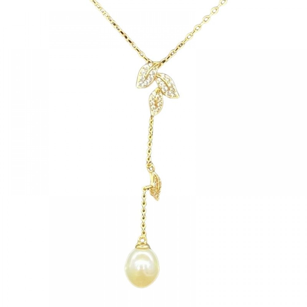 • Micro Insert Foliage Design Pearl Pendant Necklace