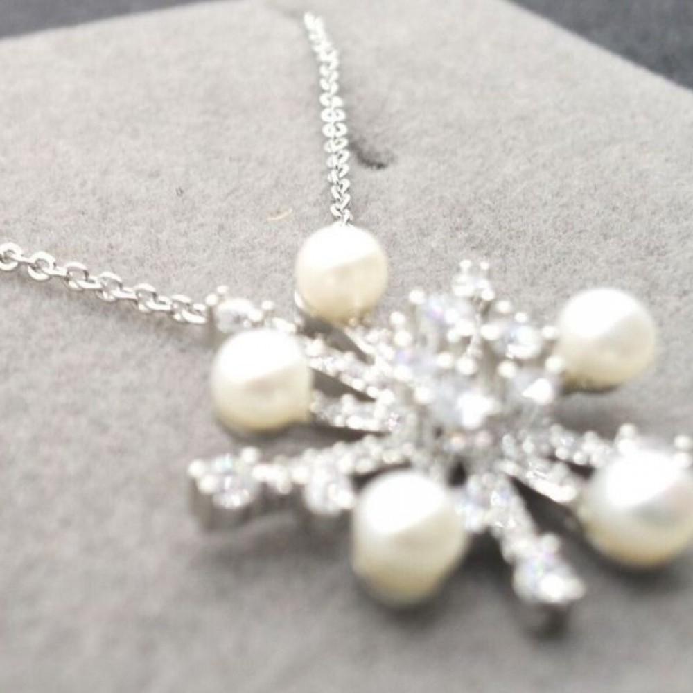 Hollow Snowflake Shape Design Seawater Pearl Pendant Necklace