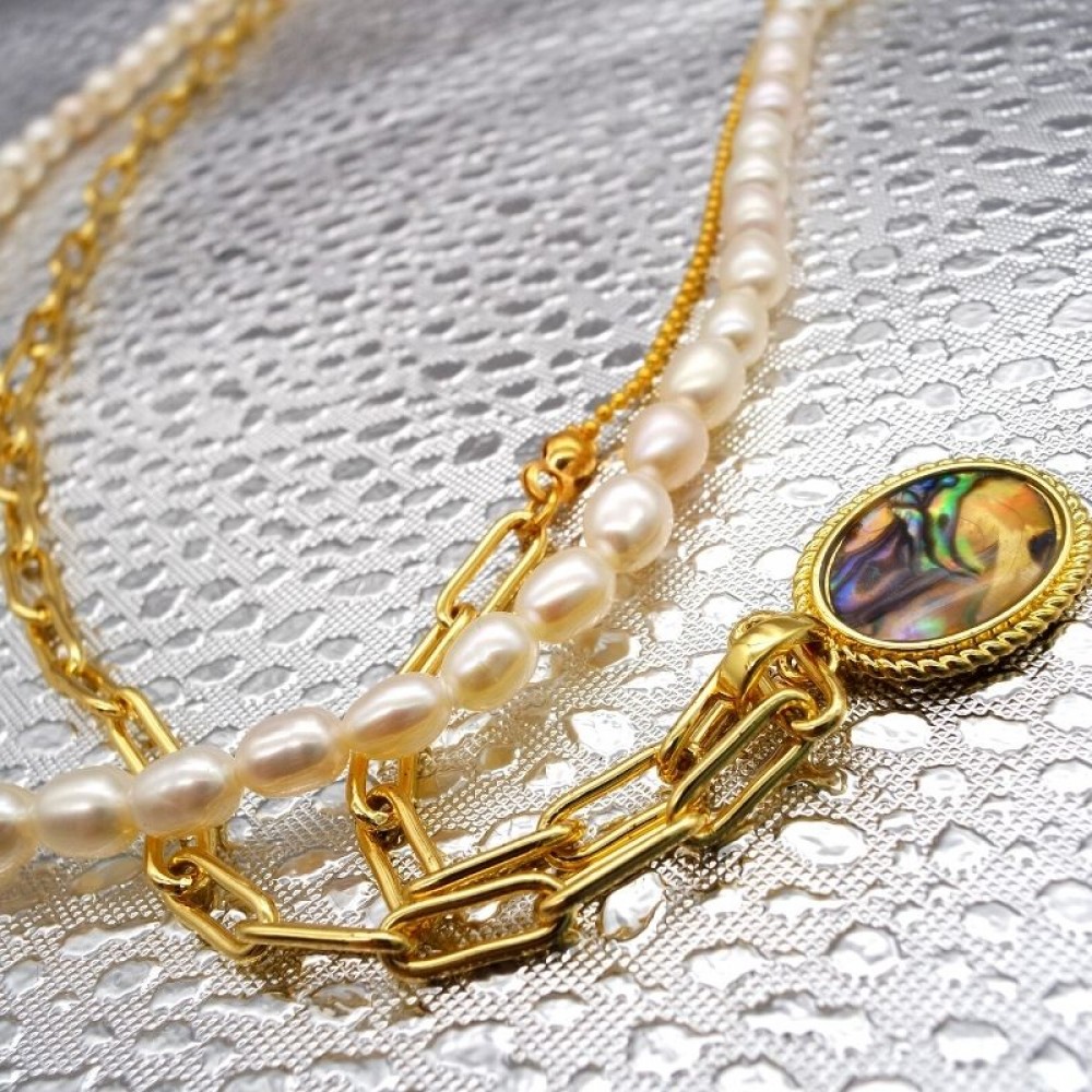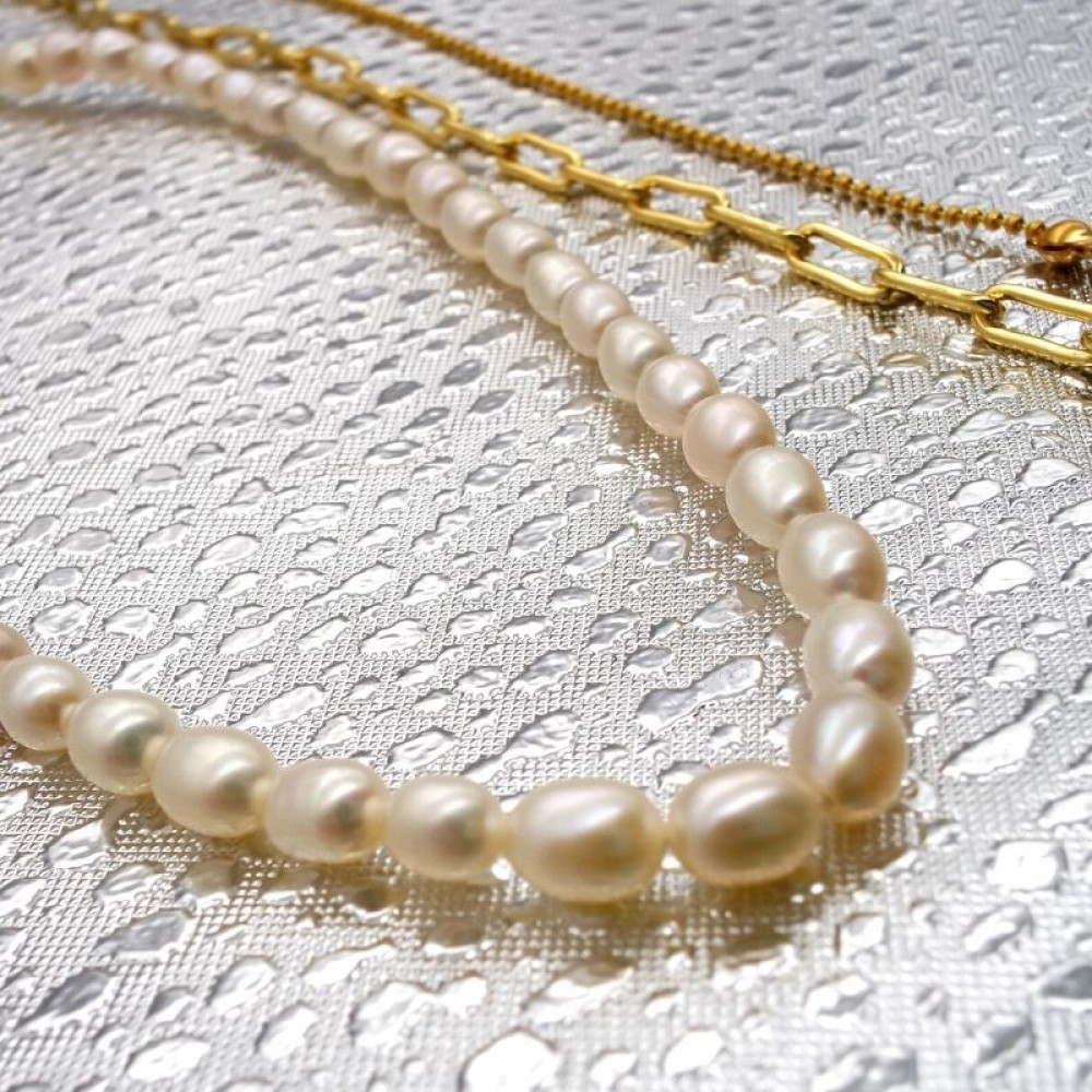 • Multipurpose Two Layer Rice Shpe Pearl Beads Necklace