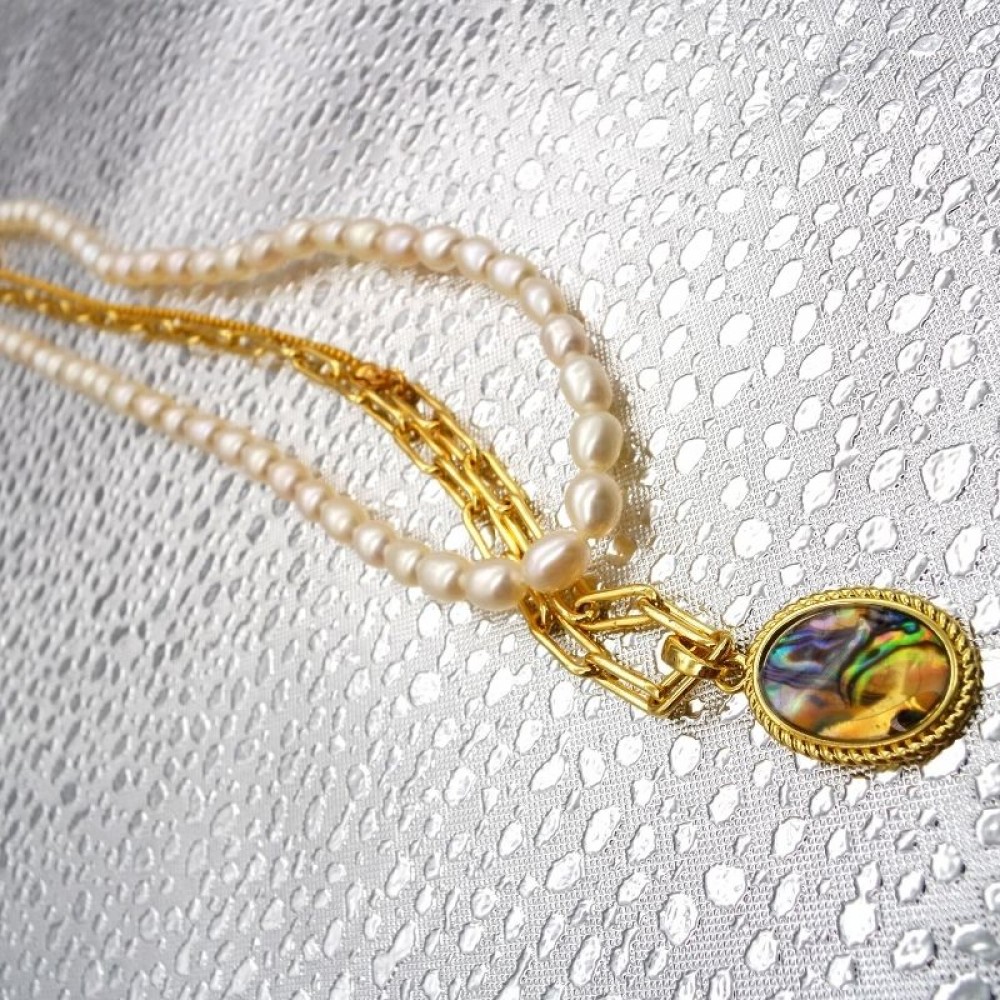 Handmade      Classification:NecklaceMaterials:Gold Plated,Natural Freshwater Pearl,Zircon,Pearl shellSpecification(mm):*pear..
